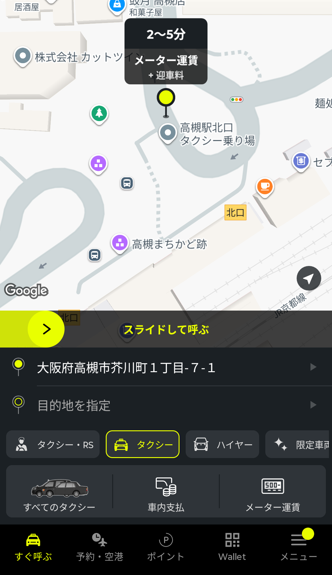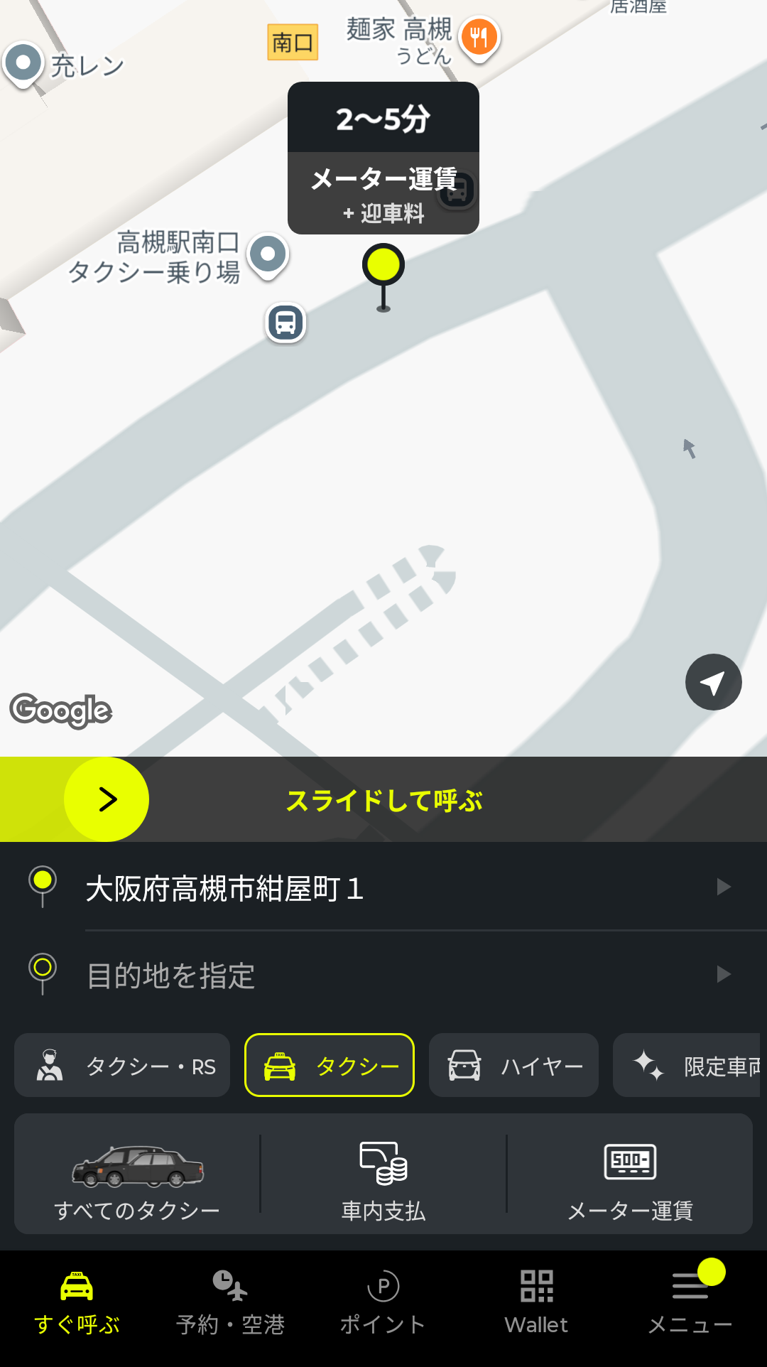 ちなみに、アプリで配車依頼をすると、迎車料金(目安:300〜500円)がかかります。