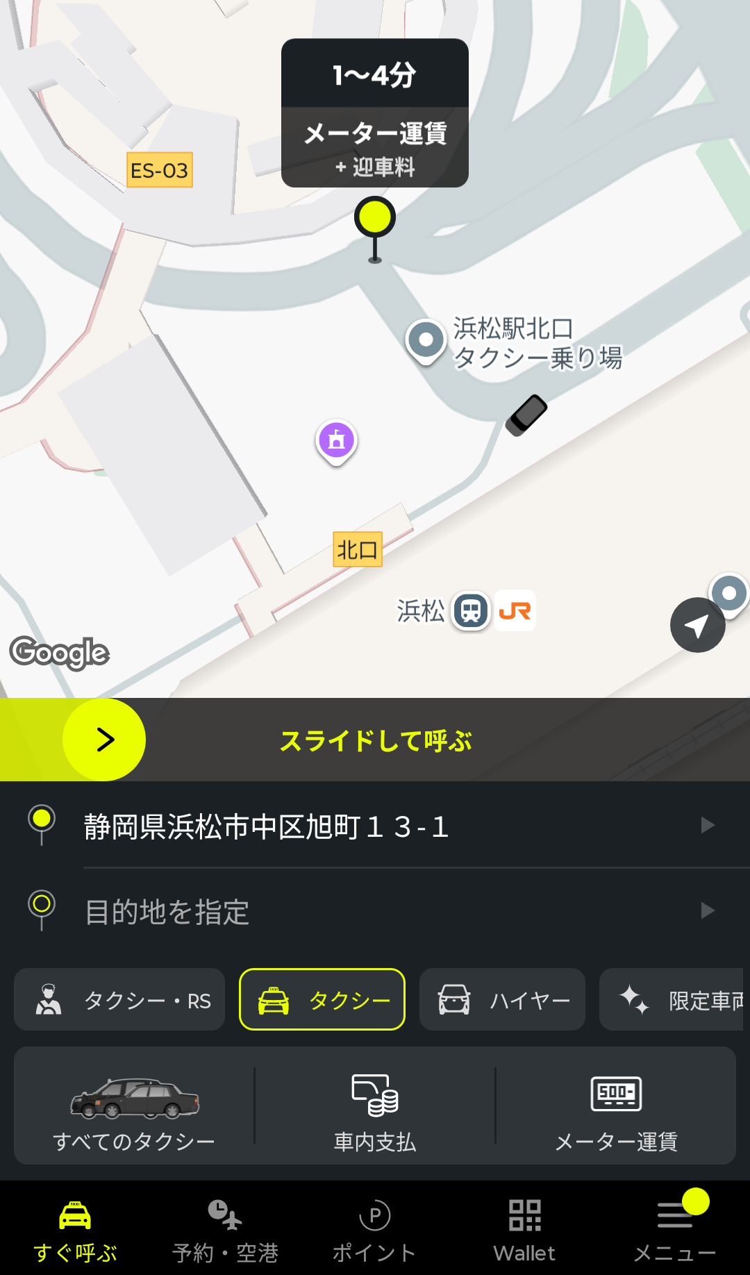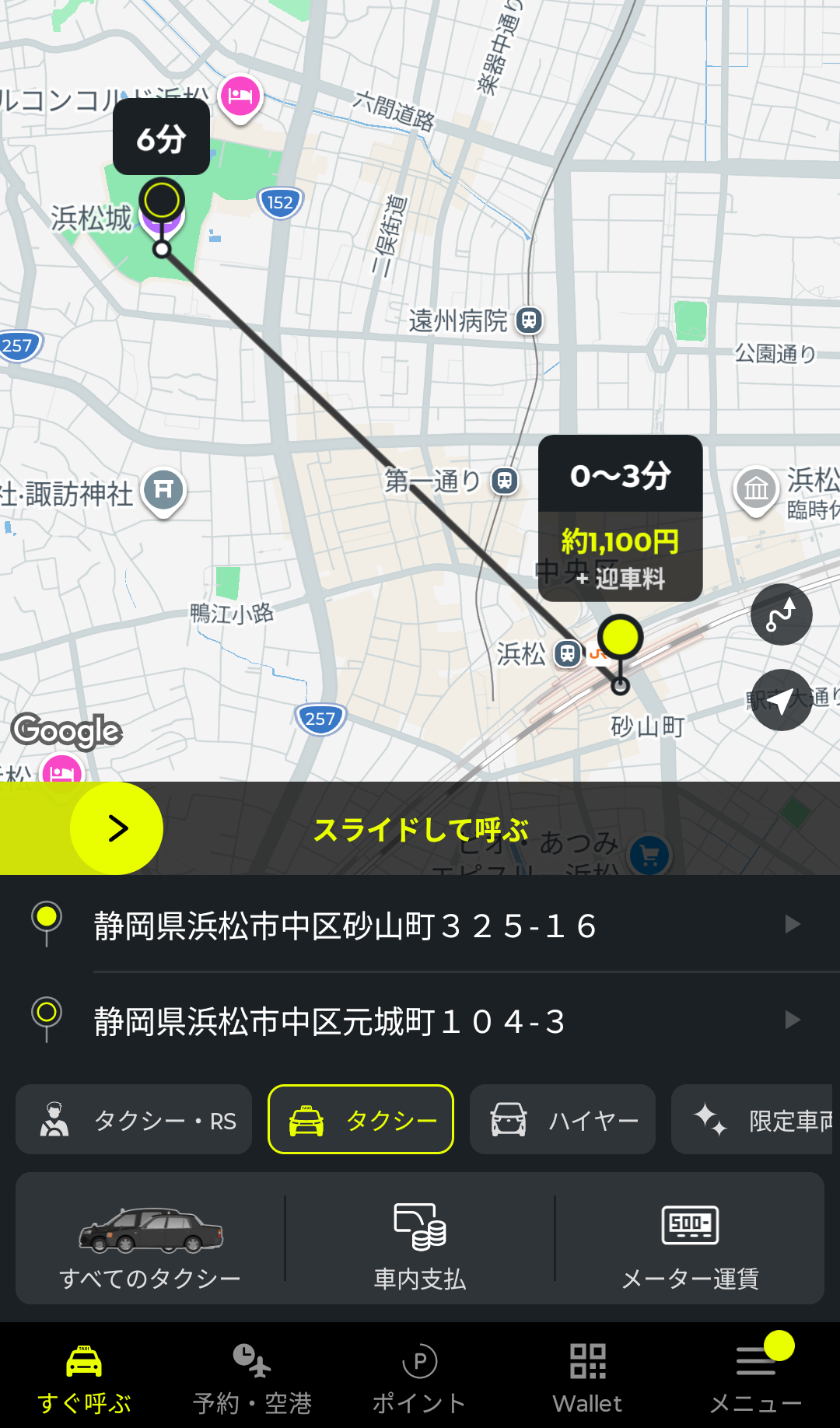 ちなみに、アプリで配車依頼をすると、迎車料金(目安:300〜500円)がかかります。