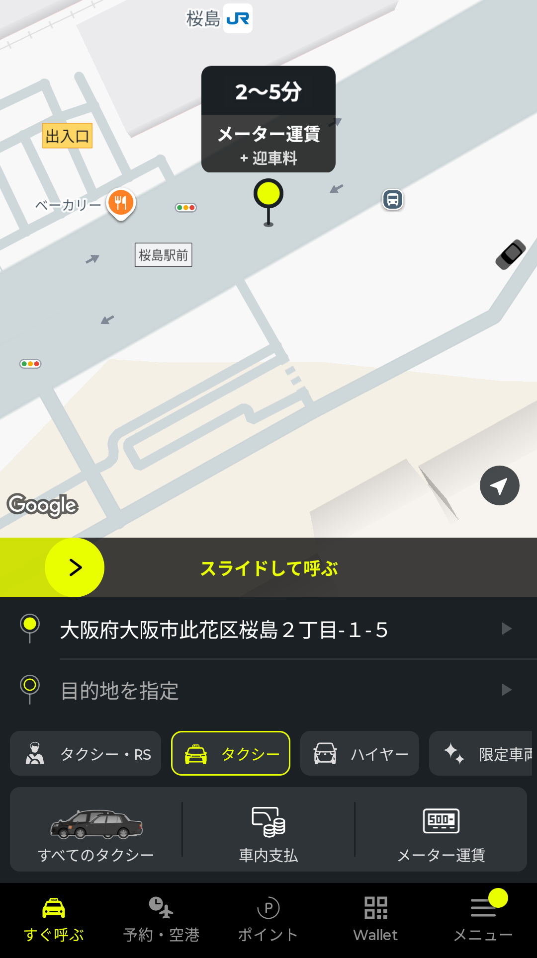 ちなみに、アプリで配車依頼をすると、迎車料金(目安:300〜500円)がかかります。