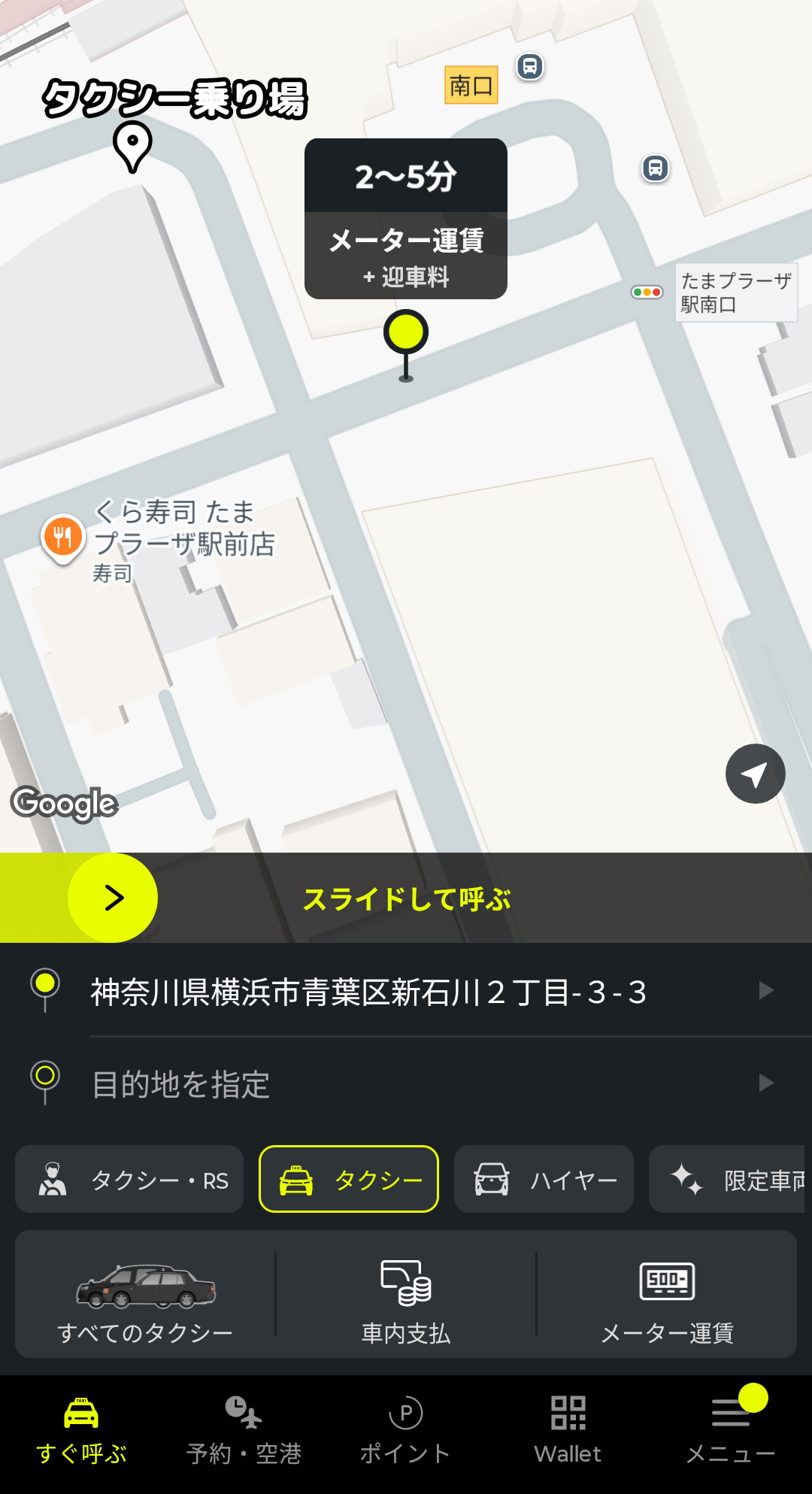ということで、たまプラーザ駅のタクシー乗り場および配車アプリの紹介でした。