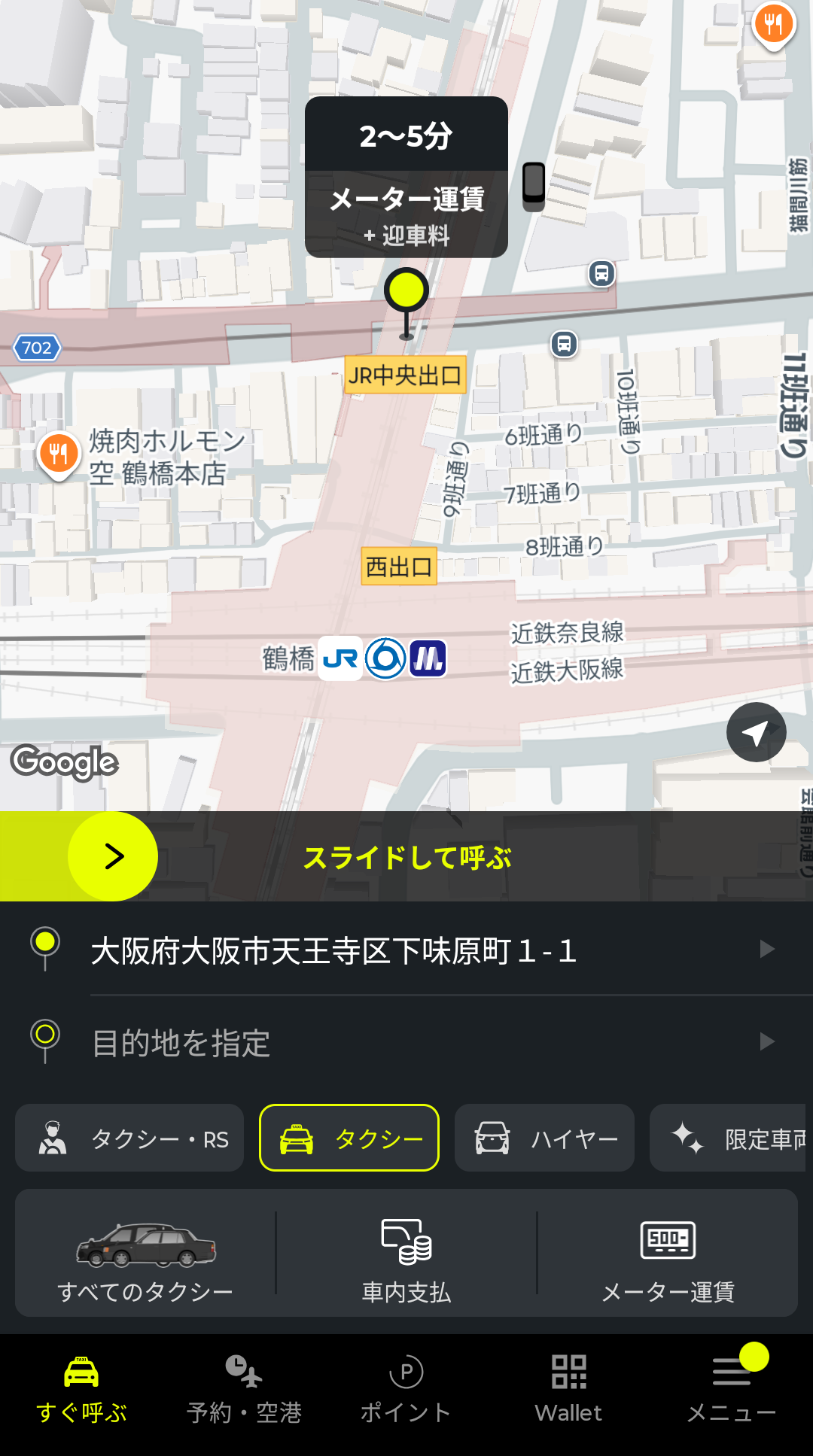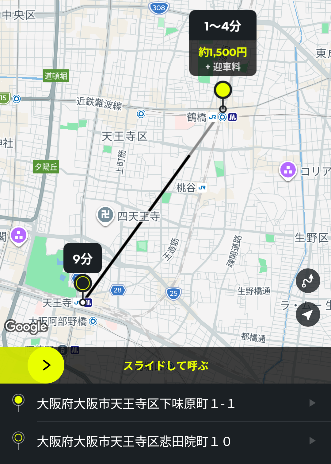 ということで、鶴橋駅で使える配車アプリの紹介でした。